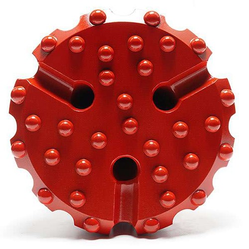 An universal design, especially for hard and abrasive rock formation. Typically, flat face with hemispherical buttons design is the most popular choice. This kind of face shape is suitable for hard to very hard and abrasive rock formations in application with high air pressure. Good penetration rates an resistance to steel wash.