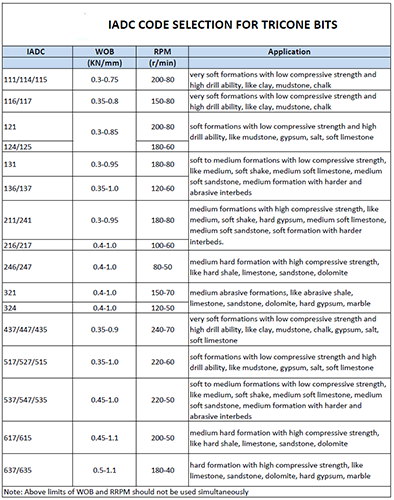 Bloom can offer tricone bits for all possible combinations of IADC number.