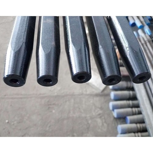 Tapered drill rod, another name called taper rod or conical drills, tapered drill steels from rock drilling tools manufacturer Bloom which provides a hexagonal chuck section to provide leverage for the rotation chuck bushing. It usually has a forged collar to maintain the proper shank striking face position in the rock drill, and a tapered bit end. Tapered steel lengths available from 0.6 meters to 3.6 meters in length—are measured from the collar to the rock drill bits end